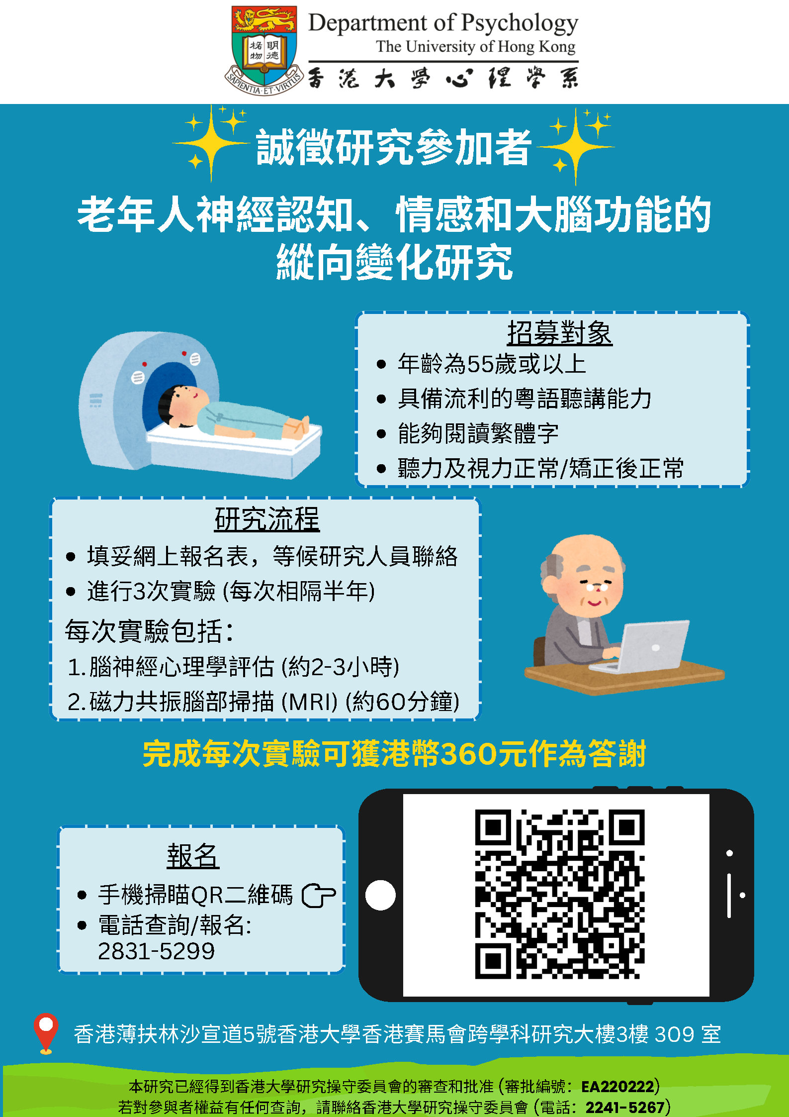 Our line of research on ageing compares the cognitive and affective functioning in healthy and clinical populations (e.g. those with MCI, dementia, and/or Alzheimer’s Disease). In addition, we are interested in examining how ageing renders our vulnerability to loneliness and depression.